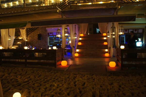 Restaurante con acceso directo por paso subterráneo del hotel a la Playa y a su "fresco" bar, restaurante, lounge bar por las noches, un espacio multi ambientes en la misma arena de la Playa de Canyelles Petites.