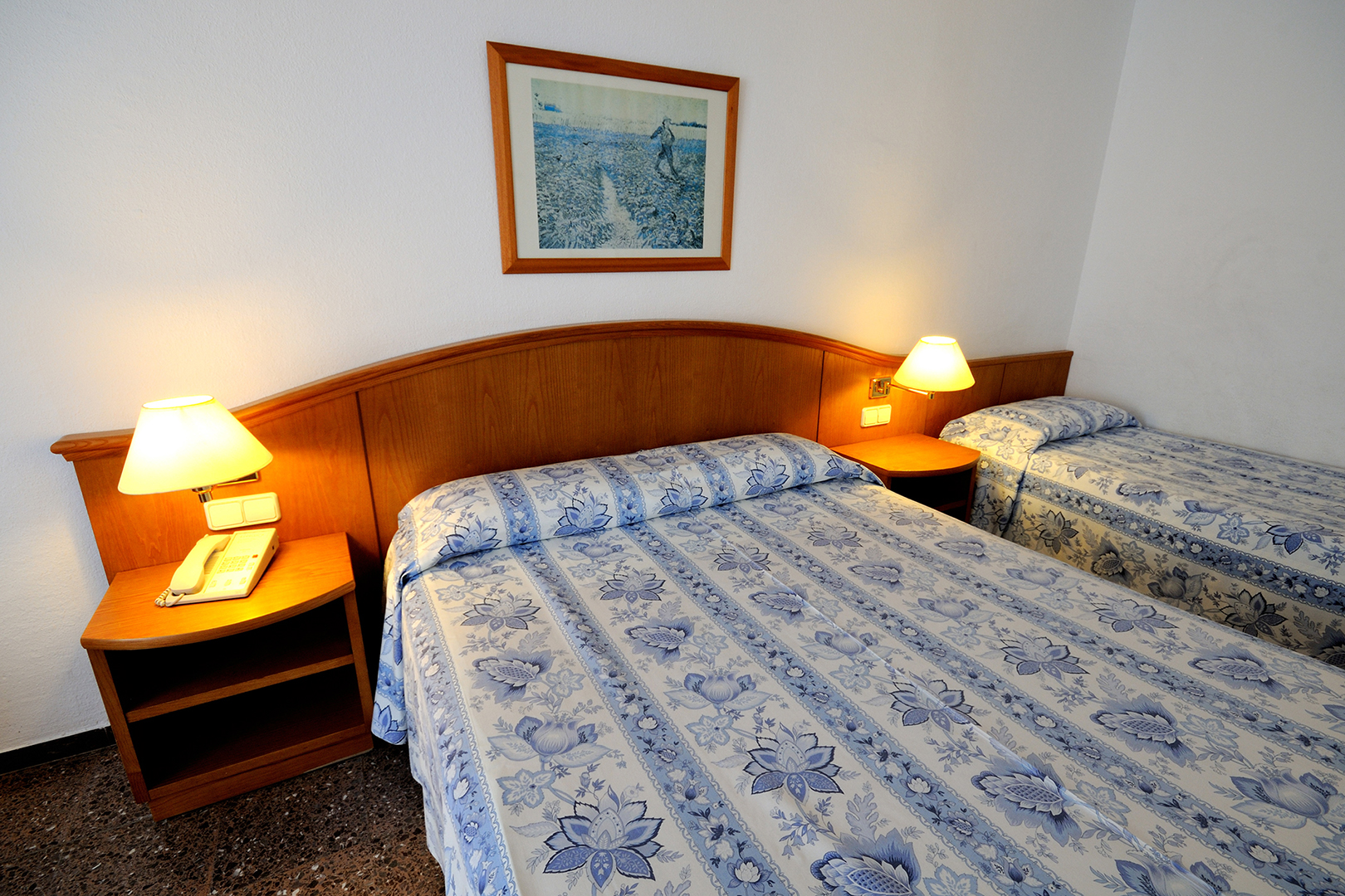 Las habitaciones del Hotel Ramblamar son espaciosas y sencillas decoradas con colores marineros del azul y blanco. Todas disponen de aire acondicionado, calefacción, baño completo, wifi, teléfono directo, caja fuerte, Tv LCD,... y un amplio balcón con vistas al mar.